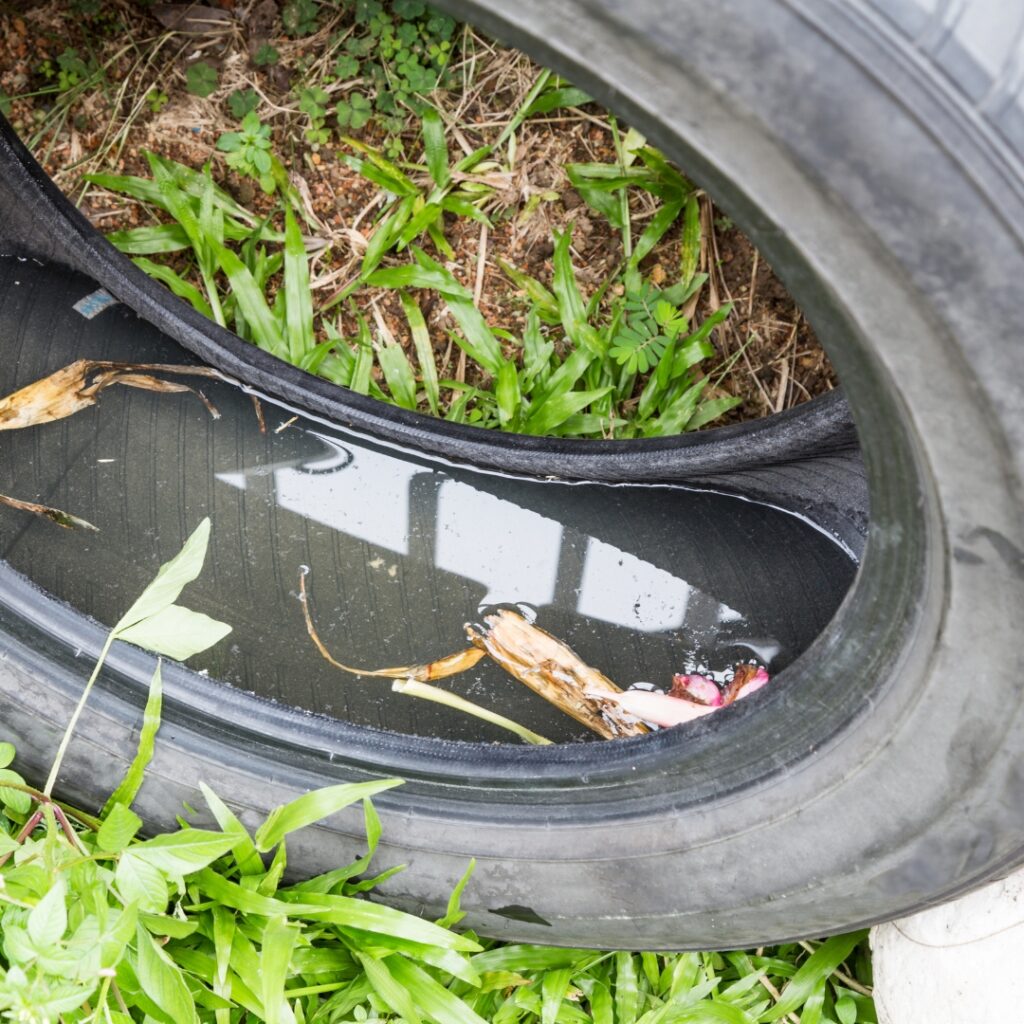DRAIN standing water to stop mosquitoes from multiplying.